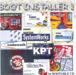 | Boot Installer ($30) | Cakewalk pro audio v 8.0, DesignCAD Pro 2000, Diskjockey 98, Intellihance 4 Pro, Kao's power tools 5, Macromedia Director 7, MsAfee Office, Music Write Plus, Netobjects Fusion v 4.0, Norton Systemwork 2.0, Omnipage Pro 9, Quickview Plus 5.1, Truespace 4.0, Microsoft Windows 98 |